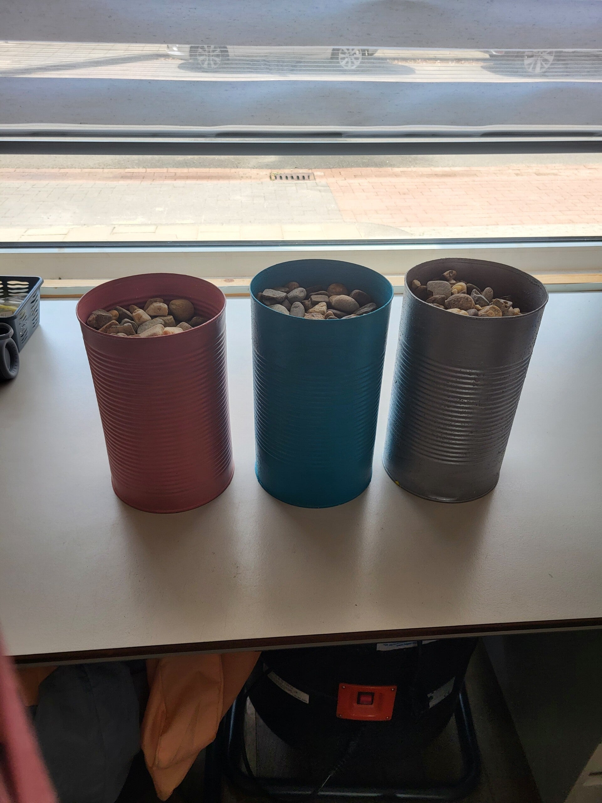 Houten Deco Bord in diverse kleuren met pot met stenen zodat het niet omvalt.